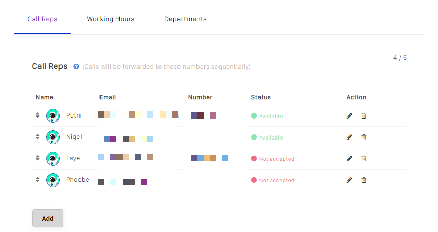 Manage your teammates under the Call Reps tab. To add a teammate, click on the Add button.
