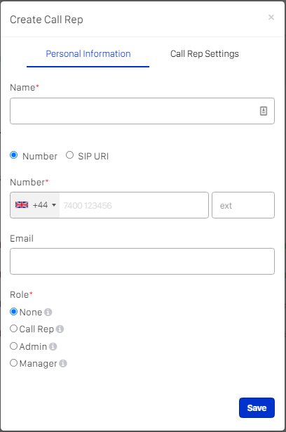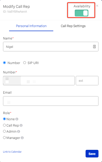 After saving their personal information, complete the Call Reps setting, and click save.
