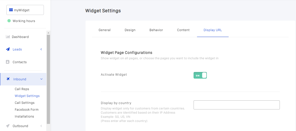 In addition, you may choose to select where your widget appears (or not) by inputting keywords that the URL contains or an exact URL match.