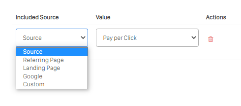 If you select Google, you can set the value to Pay per Click or Organic Search.